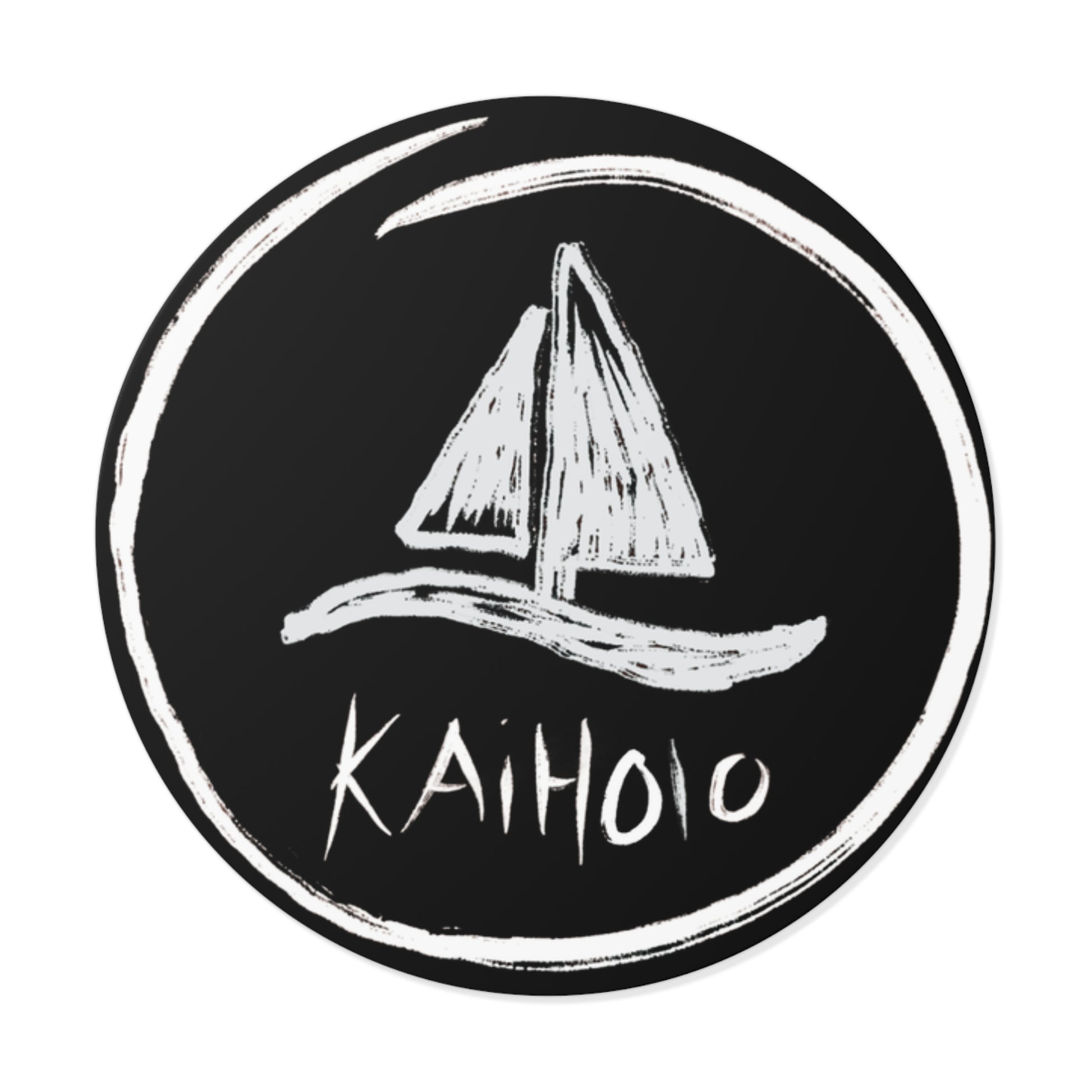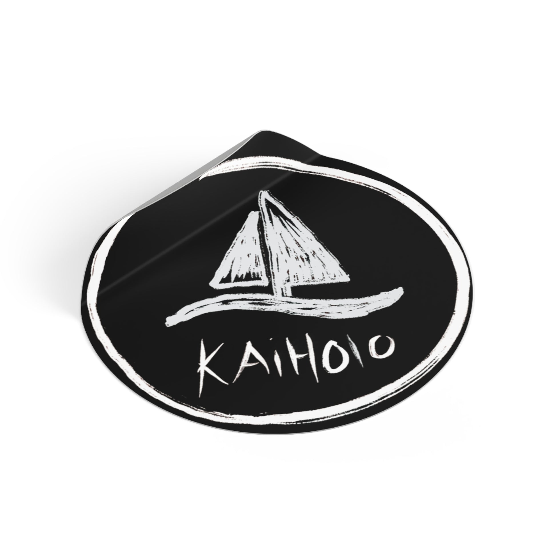 Round Sticker — Chalkboard Sailboat "KAIHOLO" Nautical Vinyl Decal